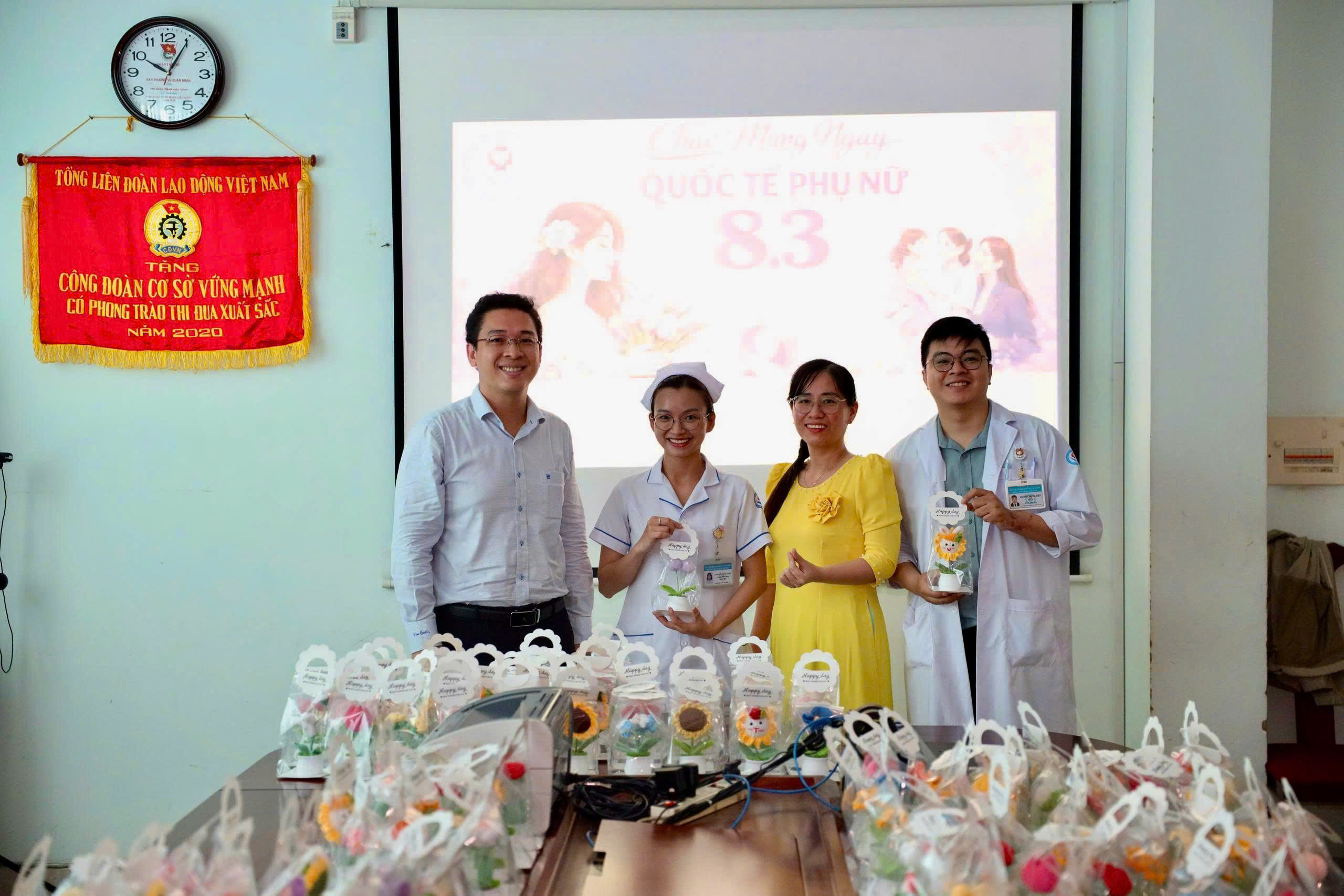 Vào lúc 10g00 ngày 05/3/2026 tại Phòng họp, Ban Chấp hành Công đoàn Bệnh viện Đa khoa Tân Phú đã tổ chức buổi trao tặng quà ý nghĩa cho gần 400 nữ công đoàn viên đang công tác tại đơn vị. Món quà năm nay là những chậu hoa len được đan móc tỉ mỉ, tượng trưng cho sự bền bỉ và vẻ đẹp rạng rỡ của người phụ nữ ngành Y. Thông qua những nhành hoa "không tàn" này, Ban Chấp hành Công đoàn gửi gắm lời chúc mừng tốt đẹp nhất, mong các chị em luôn giữ vững niềm tin và nhiệt huyết. Hy vọng món quà nhỏ này sẽ là nguồn động viên để các nữ công đoàn viên tiếp tục đồng hành cùng Ban Nữ công và Công đoàn Bệnh viện trong chặng đường sắp tới.
