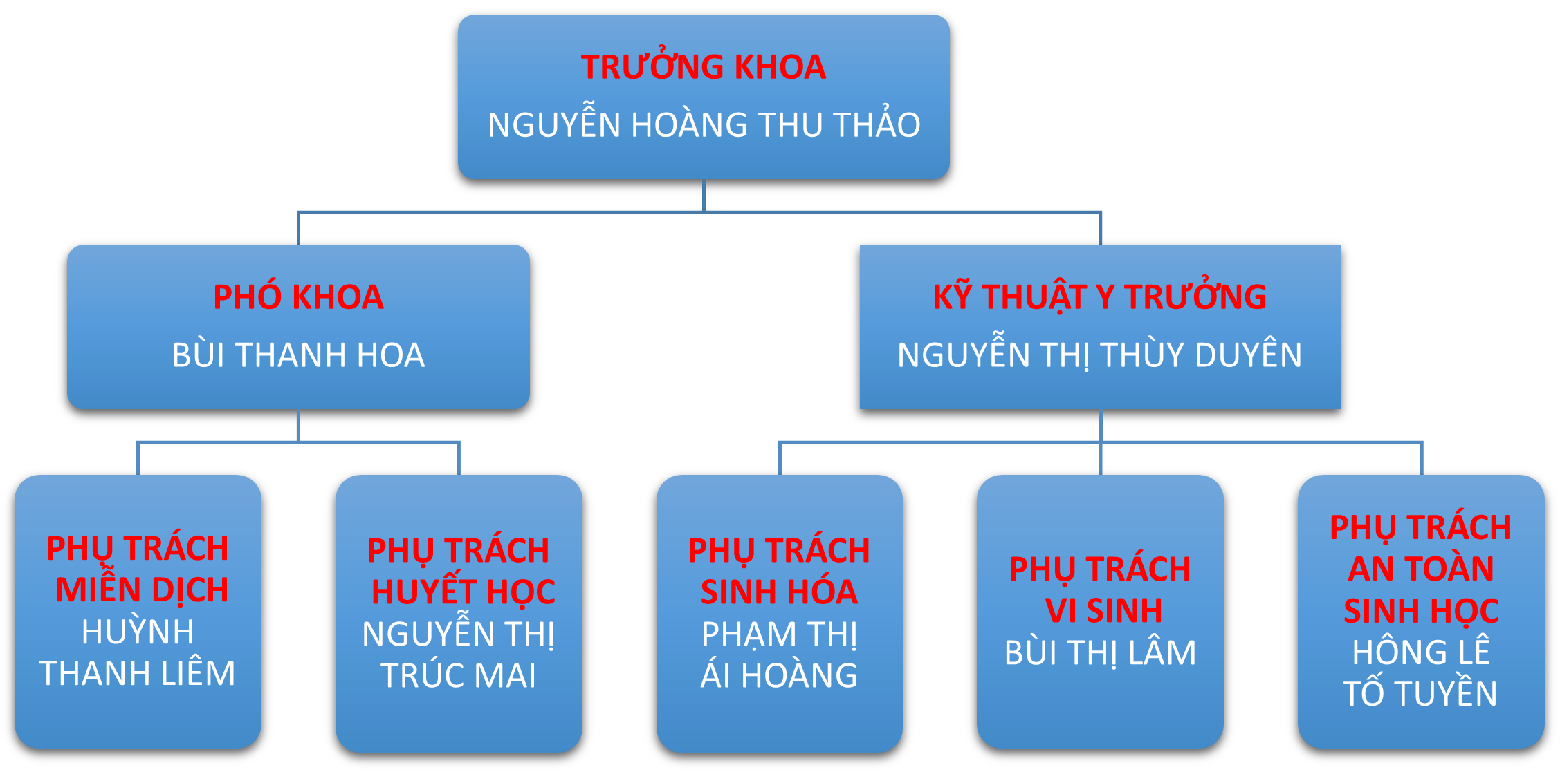 Khoa Xét nghiêm có 07 Bộ phận chuyên môn: