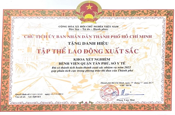 - Năm 2023, Khoa Xét nghiệm Bệnh Viện Đa khoa Tân Phú được Đoàn đánh giá của Sở Y tế đánh giá đạt mức 3 theo bảng kiểm đánh giá mức chất lượng phòng xét nghiệm y học theo Quyết định 2429/QĐ-BYT.
