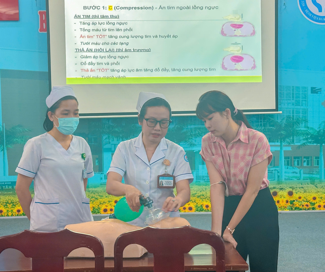 Thông qua buổi sinh hoạt, đội ngũ điều dưỡng toàn bệnh viện đã được ôn tập, cập nhật và thực hành kỹ năng hồi sinh tim phổi cơ bản – một trong những kỹ năng quan trọng giúp duy trì sự sống cho người bệnh trong tình huống khẩn cấp.