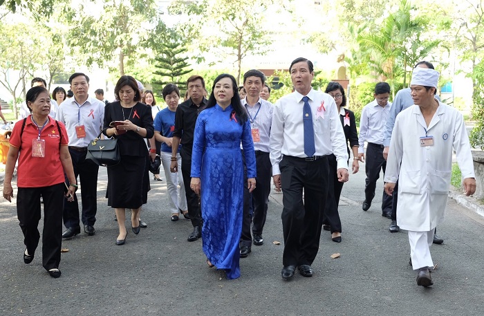 Bộ trưởng y tế Nguyễn Thị Kim Tiến, PGĐ sở y tế Nguyễn Hữu Hưng đến thăm Bệnh viện Phạm Ngọc Thạch