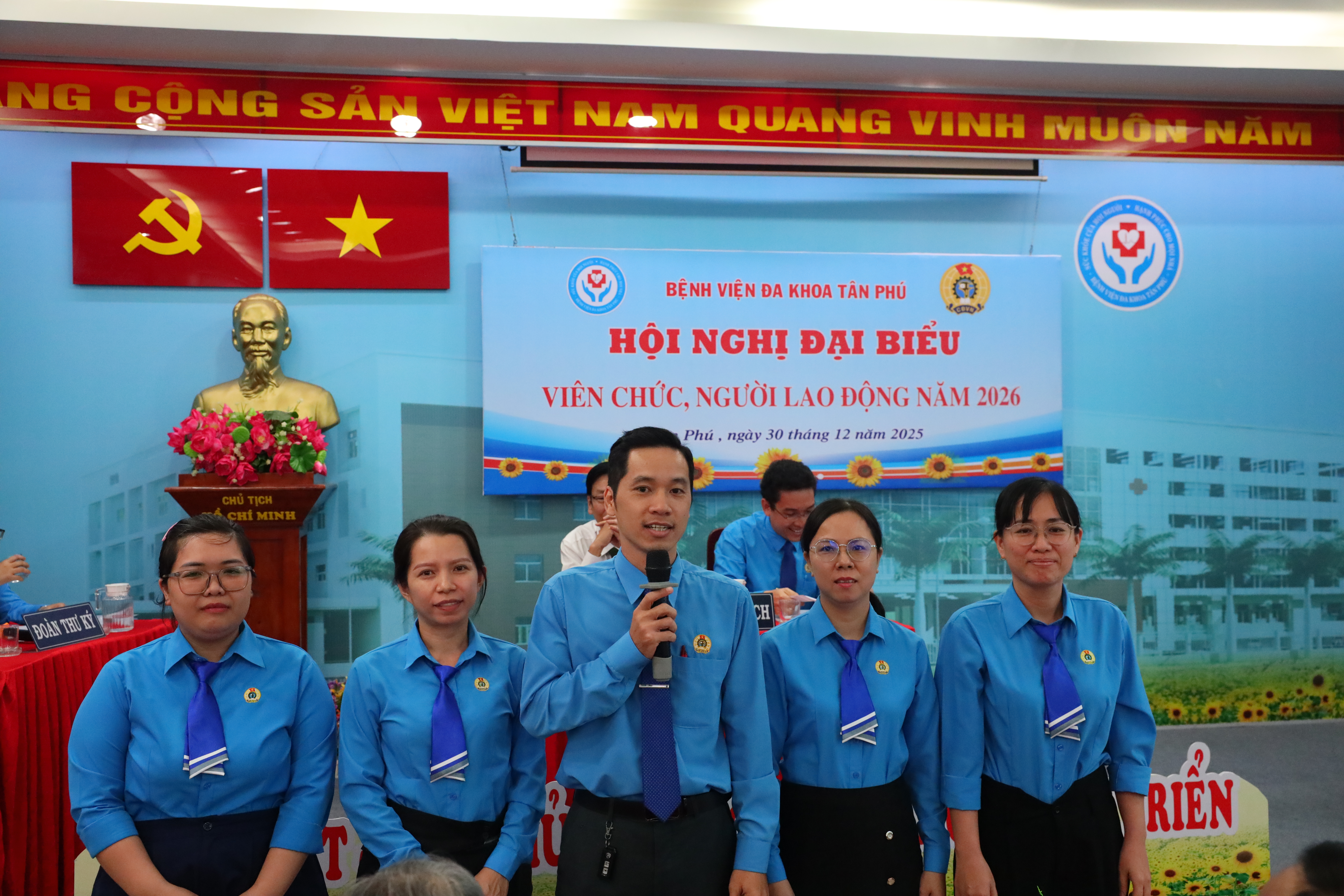 Hội nghị viên chức, người lao động bệnh viện năm 2026 thành công tốt đẹp, đây là dịp phát huy dân chủ, tạo sự đồng thuận giữa lãnh đạo và viên chức, người lao động và đánh giá kết quả thực hiện nhiệm vụ, đề ra phương hướng, giải pháp nâng cao hiệu quả hoạt động của Bệnh viện Đa khoa Tân Phú năm 2026 với các chỉ tiêu mới và thắng lợi mới.