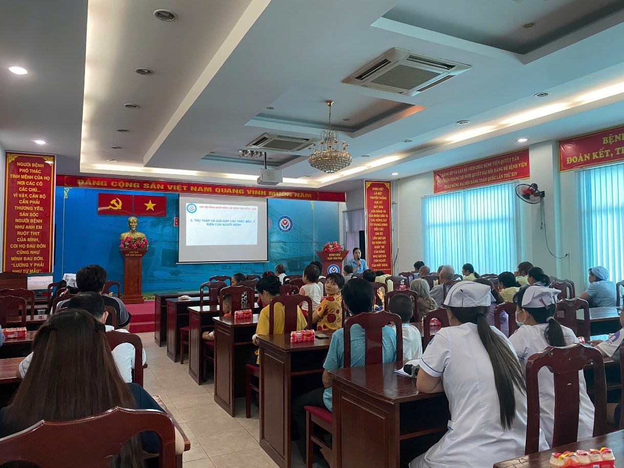 Sáng ngày 23/9/2025, tại Hội trường A, Bệnh viện Đa khoa Tân Phú đã diễn ra buổi họp Hội đồng người bệnh cấp bệnh viện Quý III/2025. Chương trình thu hút sự tham dự của Ban Giám đốc, đại diện các khoa/phòng và hơn 40 người bệnh, thân nhân đến từ nhiều khoa lâm sàng. Đây không chỉ là hoạt động thường kỳ mà còn là dịp để bệnh viện lắng nghe, thấu hiểu và chia sẻ cùng người bệnh, từ đó hoàn thiện hơn nữa chất lượng dịch vụ chăm sóc sức khỏe.